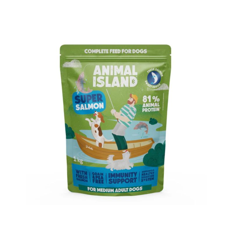 Animal Island Adult Dog Fish to pełnoporcjowa, doskonale zbilansowana sucha karma dla dorosłych psów średnich ras. Jej receptura oparta została na rybach - łososiu, dorszu i gładzicy - które stanowią aż 81% białka pochodzenia zwierzęcego w 32% białka surowego. Dzięki temu karma doskonale sprawdza się w diecie psów wrażliwych i wymagających wysokiej jakości, lekkostrawnych składników.Skład karmy dla psów: łosoś 37% (22% suszony łosoś, 15% świeży łosoś), suszone białe ryby (dorsz, gładzica) 15%, suszone płatki ziemniaczane, bataty, hydrolizowana wątroba wieprzowa 4%, tłuszcz wołowy 3%, wysłodki buraczane suszone, olej z łososia 2%, drożdże piwne suszone 1%, siemię lniane, jabłka suszone 1%, substancje mineralne, cykoria suszona 0,5%, brokuły suszone 0,15%, pomidory suszone 0,15%, szpinak suszony 0,15%, żurawina suszona 0,15%, borówki suszone 0,15%, mieszanka ekstraktów ziołowych: Jukka Mojave 0,15%, rozmaryn 0,05%, kurkuma 0,05%, cytrus 0,05%, goździkowiec 0,05%.