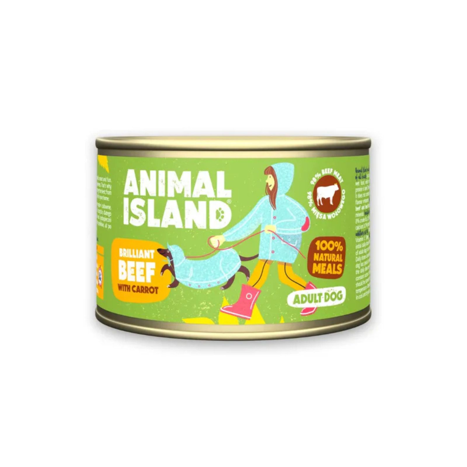 Animal Island Beef & Carrot to pełnoporcjowa, bezzbożowa mokra karma dla dorosłych psów wszystkich ras. Receptura bazuje wyłącznie na jednym źródle białka - wołowinie - dzięki czemu doskonale sprawdzi się u psów z alergiami i nietolerancjami pokarmowymi. Wołowina to bogate źródło pełnowartościowego białka i naturalnego żelaza, wspierającego prawidłowy rozwój mięśni, krwiotworzenie i ogólną kondycję organizmu psa.Dodatek marchwi dostarcza błonnika i beta-karotenu, a siemię i olej lniany wspierają zdrowie skóry, sierści oraz prawidłowe trawienie.