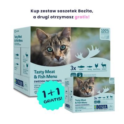 Bozita mokra karma w saszetkach w sosie to szwedzka jakość i smakowite pożywienie dla Twojego kota zawierające wszystkie niezbędne witaminy, aminokwasy i minerały. Jest to pełnoporcjowa, bezzbożowa karma, bez GMO, która w swoim składzie nie zawiera glutenu, cukru, soi ani żadnych barwników i sztucznych konserwantów. Te pyszne mięsne kawałki w sosie są pełnowartościowym posiłkiem dla Twojego pupila a swoim smakiem i aromatem zachwyci nawet wyszukane podniebienia.