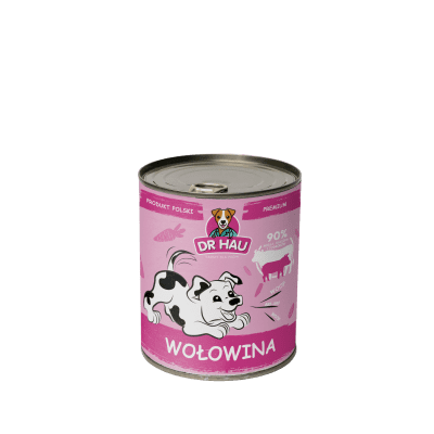 Monobiałkowa karma mokra DR HAU to pyszna karma jakości premium, na bazie wołowiny dla psów w każdym wieku. Mięso wołowe jest bogate w kreatynę i L-karnitynę, zawiera także kwas linolowy i alaninę, które podtrzymują masę mięśniową. Jest też świetnym źródłem żelaza i witamin z grupy B, A oraz E.