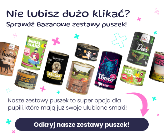 W Bazarze Pupila oferujemy szeroką gamę produktów dla psów w każdym wieku, w tym mokre i suche karmy, specjalistyczne pożywienie dla alergików i niejadków, przysmaki, zabawki oraz inne akcesoria dla psów. W naszym sklepie możesz znaleźć także karmy dostosowane do konkretnych ras, np. karmy dla buldogów francuskich, białych psów lub yorków. Sprawdź naszą ofertę i zapewnij swojemu psu wszystko, co najlepsze!