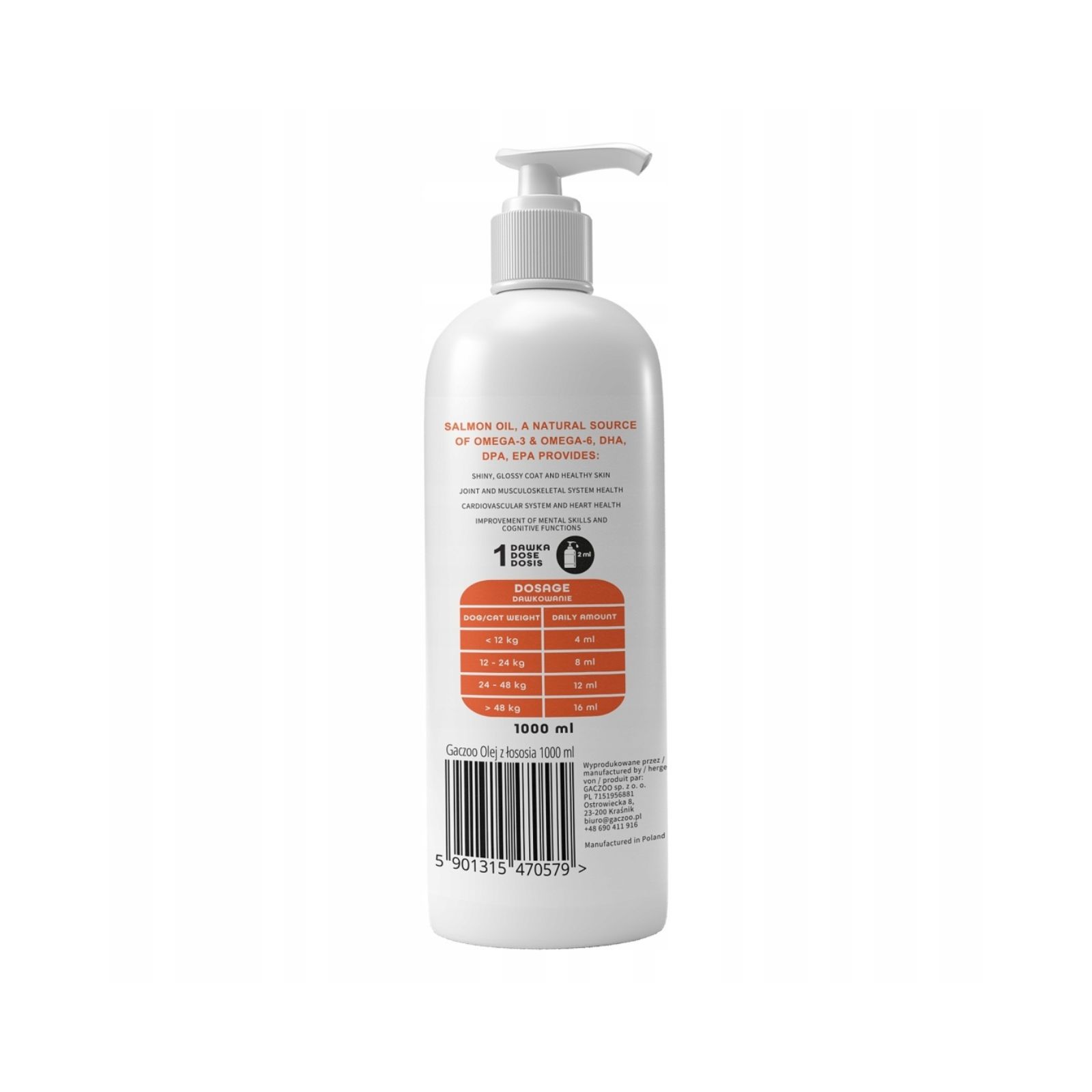 GACZOO Salmon Oil to najwyższej jakości, 100% naturalny olej z łososia atlantyckiego, stworzony z myślą o psach i kotach każdej rasy oraz w każdym wieku. To skoncentrowane źródło kwasów tłuszczowych Omega-3 i Omega-6, w tym DHA, EPA i DPA, które wspierają zdrowie skóry, stawów, serca oraz prawidłową pracę mózgu.