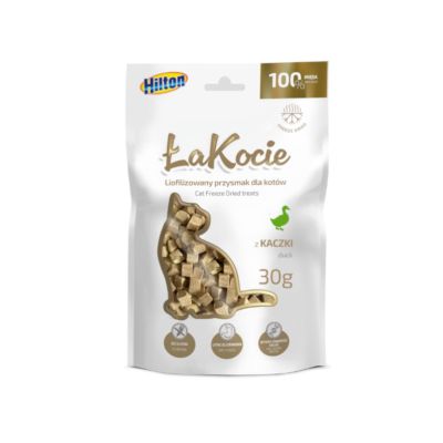 HILTON ŁaKocie to w 100% naturalny, liofilizowany przysmak dla kotów, który stanowi zdrową i smaczną alternatywę dla tradycyjnych smakołyków. Proces liofilizacji pozwala zachować pełnię wartości odżywczych mięsa, eliminując wodę, ale jednocześnie gwarantując intensywny smak i aromat. Dzięki temu przysmaki te są nie tylko wyjątkowo smakowite, ale także lekkostrawne i pełne wartościowych składników odżywczych.