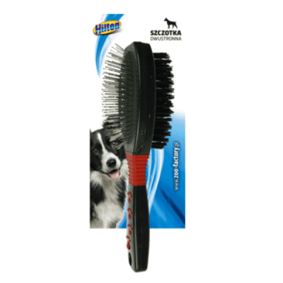 Hilton dwustronna owalna szczotka dla psa przeznaczona zarówno do rozczesywania sierści (strona nylonowa), jak i do rozczesywania kołtunków i splątanej sierści. Wygodna dla właścieli, dzięki antypoślizgowym wypustkom, nie ślizga się w dłoni.