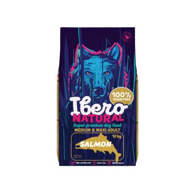 Ibero Grain-free Dog Medium & Maxi Adult Salmon to pełnoporcjowa karma klasy super premium, stworzona z myślą o dorosłych psach średnich i dużych ras od 1. roku życia. Receptura oparta na wysokiej zawartości ryb morskich – łososia i sardynek – dostarcza łatwo przyswajalnego białka oraz cennych kwasów tłuszczowych omega-3, wspierając zdrową skórę, lśniącą sierść i ogólną witalność psa.