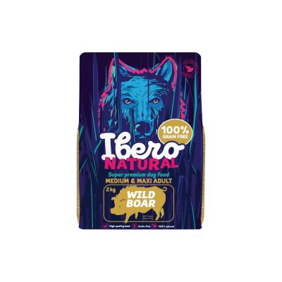 Ibero Grain-Free Dog Medium & Maxi Adult Wild Boar to pełnoporcjowa karma super premium bez zbóż, przeznaczona dla dorosłych psów ras średnich i dużych od 1. roku życia. Receptura oparta jest na 29% suszonego mięsa dzika – naturalnym, wysoko strawnym źródle białka, które wyróżnia się intensywnym smakiem i niskim potencjałem alergizującym. Formuła została wzbogacona o bataty i ziemniaki jako lekkostrawne źródła energii, a także o wątróbkę wieprzową, dynię i marchew, które wspierają witalność oraz prawidłowe trawienie.