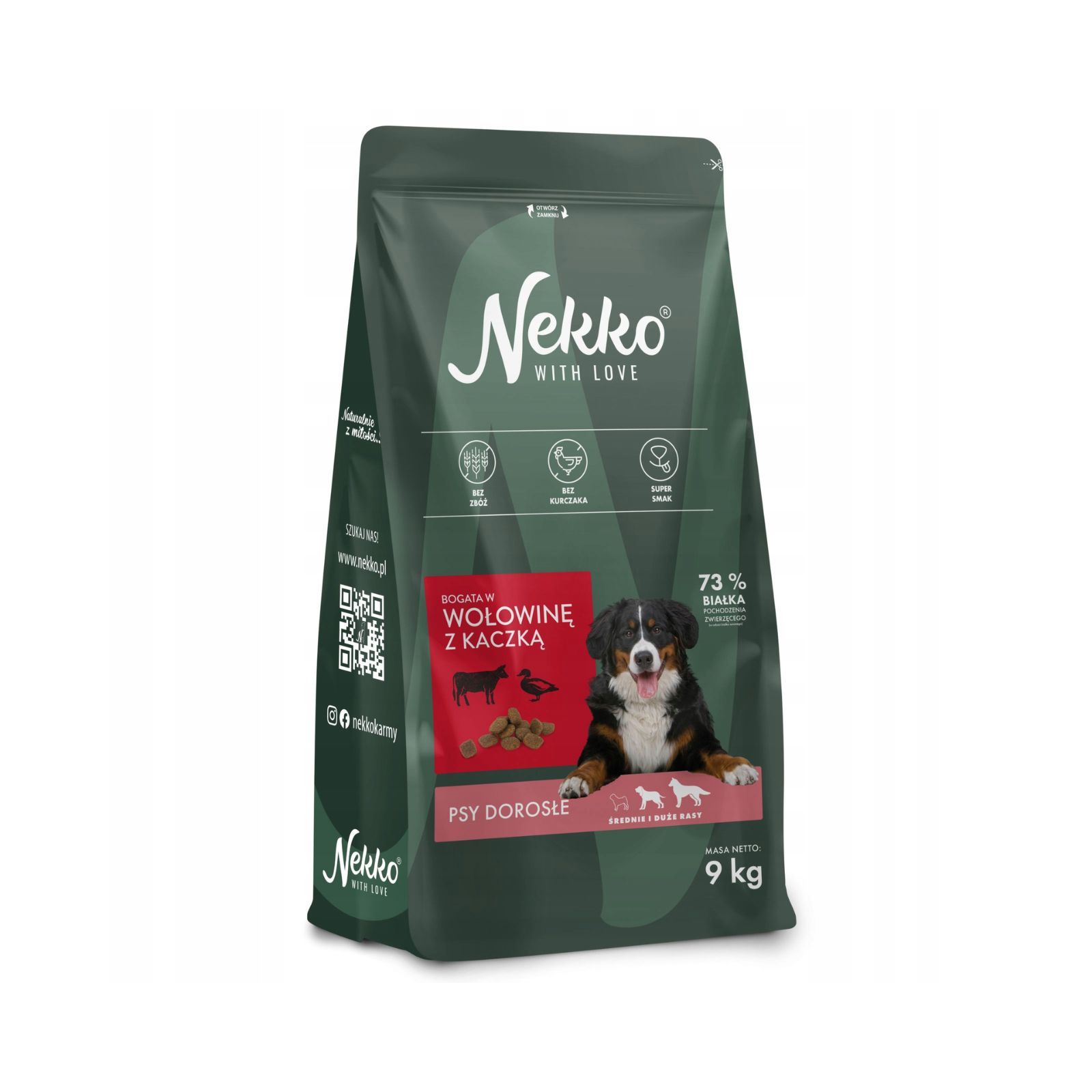 Nekko to pełnoporcjowa, sucha karma dla dorosłych psów średnich i dużych ras, przygotowana z myślą o zdrowiu, energii i codziennym komforcie pupili. Receptura oparta jest na 73% białka pochodzenia zwierzęcego, dzięki czemu dostarcza psom wszystkich niezbędnych składników odżywczych, a przy tym jest lekkostrawna i odpowiednia także dla wrażliwych brzuszków.