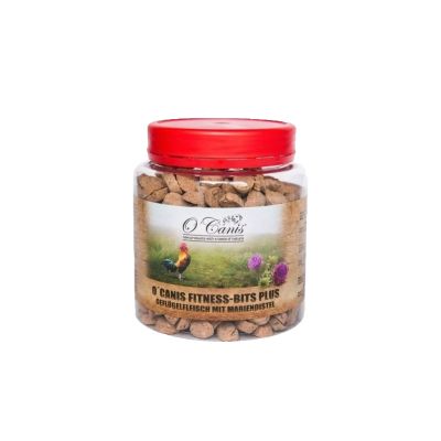 O'Canis Fitness Bits PLUS to smakowity przysmak trenerski z dużą zawartością mięsa, a bez dodatku zbóż. Nie znajdziesz w nim żadnych sztucznych barwników, konserwantów czy cukru. Smaczki zawierają dodatkowe suplementy diety, które wspomagają zdrowie oraz zapewnią pupilowi niesamowite doznania smakowe. Przechowywane w wygodnym, zakręcanym opakowaniu zapewni świeżość i zapach na dłużej.