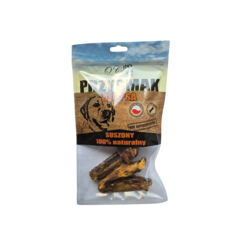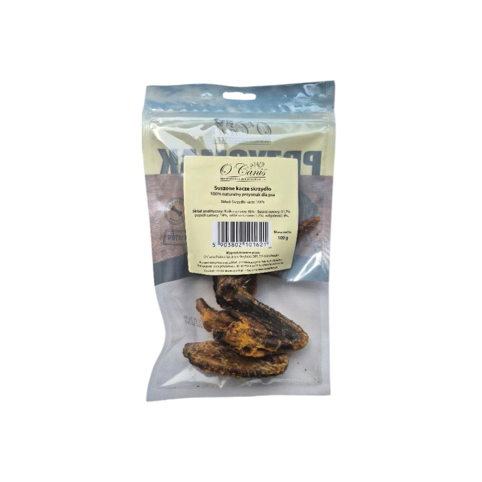 O’Canis suszone kacze skrzydło z mięsem to w 100% naturalny przysmak bez konserwantów, barwników i sztucznych dodatków. To aromatyczny, chrupiący gryzak, który wspiera higienę jamy ustnej i pomaga zaspokoić naturalną potrzebę żucia. Dzięki wysokiej zawartości białka i zdrowych tłuszczów stanowi cenne uzupełnienie codziennej diety psa, dodając mu energii i wspierając rozwój mięśni. Idealny jako przekąska między posiłkami lub naturalna nagroda.Skład przysmaku dla psa: skrzydło kacze 100%.