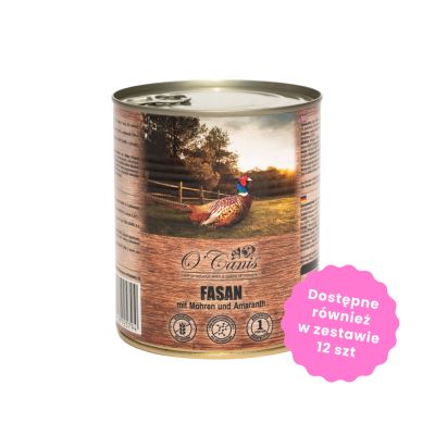 Karma mokra O'Canis to pyszna karma jakości premium, w sosie własnym ze świeżym mięsem, na bazie bażanta z marchewką dla psów w każdym wieku. Delikatna obróbka, powoduje, że karma jest wyjątkowo niedrażniąca, gwarantuje wysoki poziom tolerancji i łatwość trawienia, jest to świetne rozwiązanie dla psów z wrażliwym układem pokarmowym.