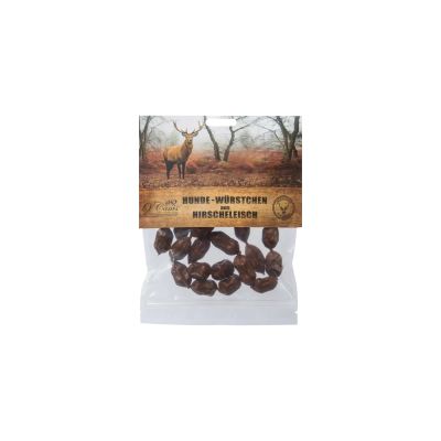 Mini kiełbaski Premium z mięsa jelenia to wolno suszone, uformowane małe kiełbaski w celu łatwego porcjowania. Dzięki długiemu i delikatnemu suszenia zachowują intensywny mięsny aromat i wyjątkowy smak mięsa. To zdrowy i naturalny przysmak, bez sztucznych dodatków i wypełniaczy, nie zawierający substancji wabiących, soli, cukru ani gliceryny.