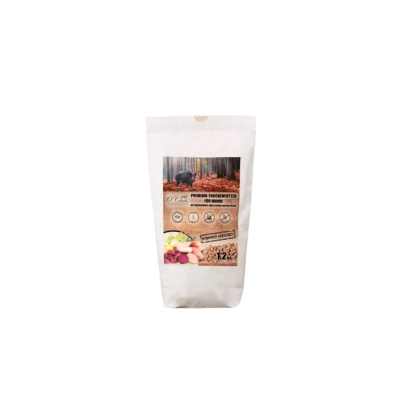 Pełnoporcjowa sucha karma O'Canis premium z dzika, słodkiego zimeniaka i buraków to bardzo dobrze strawna karma dla dorosłych psów wszystkich ras. Poddana procesowi pieczenia, dzięki czemu nie dodaje się do niej żadnych sztucznych dodatków czy tłuszczy, jest bezzbożowa i bezglutenowa.