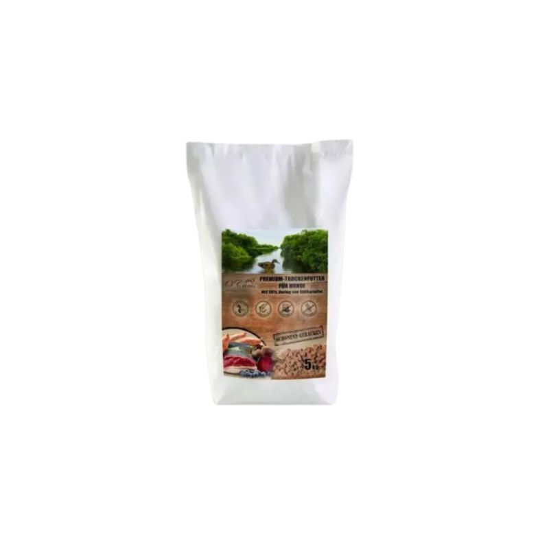 Pełnoporcjowa sucha karma O'Canis premium z kaczki, śledzia i słodkiego ziemniaka to bardzo dobrze strawna karma dla dorosłych psów wszystkich ras. Poddana procesowi pieczenia, dzięki czemu nie dodaje się do niej żadnych sztucznych dodatków czy tłuszczy, jest bezzbożowa i bezglutenowa.