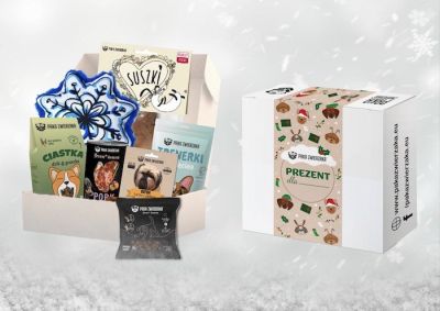 Box to przysmaki zapakowane w pudło od Paki Zwierzaka, idealne na prezent pod choinkę.