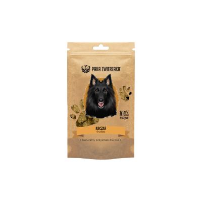 Wspaniały smak powoduje, że mogą służyć jako nagroda do tresury lub przekąska między posiłkami.Skład: mięso z kaczki, gliceryna, sól. Analiza przysmaku dla psa: białko 38%, tłuszcz 1,5%, błonnik 1%, popiół surowy 3,5%, wilgotność 26%.Przechowywać w suchym miejscu. Pamiętaj aby zawsze zapewnić psu dostęp do czystej, świeżej wody.