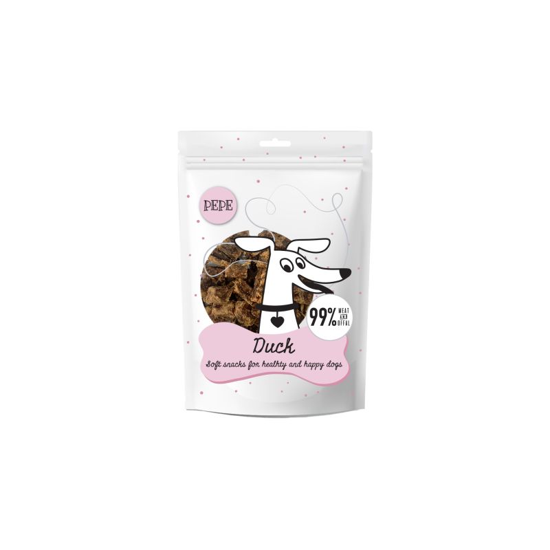 Wspaniały smak powoduje, że mogą służyć jako nagroda do tresury lub przekąska między posiłkami.Skład: mięso z kaczki, gliceryna, sól. Analiza przysmaku dla psa: białko 38%, tłuszcz 1,5%, błonnik 1%, popiół surowy 3,5%, wilgotność 26%.Przechowywać w suchym miejscu. Pamiętaj aby zawsze zapewnić psu dostęp do czystej, świeżej wody.