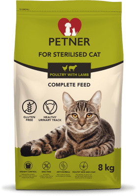 Petner sucha karma dla kotów po zabiegu sterylizacji lub kastracji oraz z problemami utrzymania prawidłowej wagi, kurczak z jagnięciną opakowanie 8kg