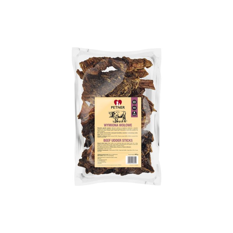 Naturalny suszony gryzak dla psa, wymiona wołowe, opakowanie 400g
