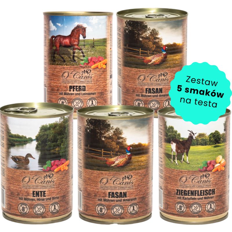 Zestaw testowy puszek - 5 smaków - idealny dla psa niejadka na przetestowanie nowych smaków!