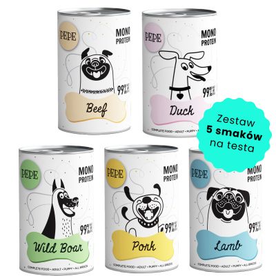 Zestaw zawiera 5 karm - w sam raz do przetestowania dla psa niejadka!