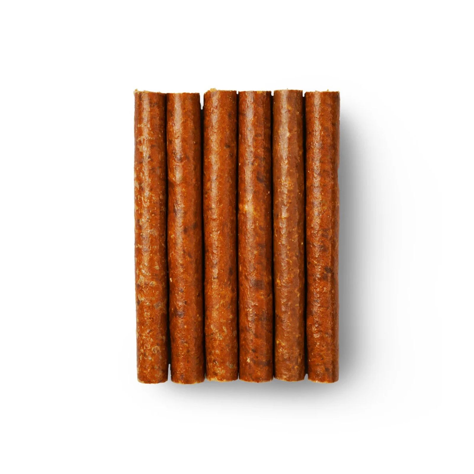 Kabanosy zostały przygotowane wyłącznie z mięsa z indyka, co czyni je lekkostrawnym i dobrze przyswajalnym źródłem białka. Indyk dostarcza cennych aminokwasów, w tym tauryny, wspierającej prawidłową pracę serca i układu krążenia. Zawarte w nim witaminy z grupy B pomagają dbać o zdrową skórę i lśniącą sierść, a niska zawartość tłuszczu sprawia, że przysmak nadaje się także dla psów dbających o sylwetkę.