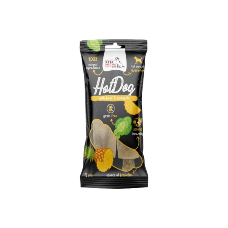 Syta Micha Hot Dog do żucia wołowina z ananasem