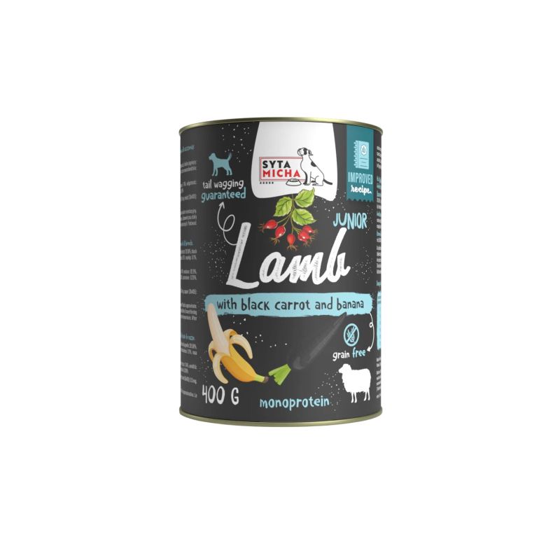 Syta Micha Karma mokra dla szczeniąt jagnięcina z czarną marchwią i bananem