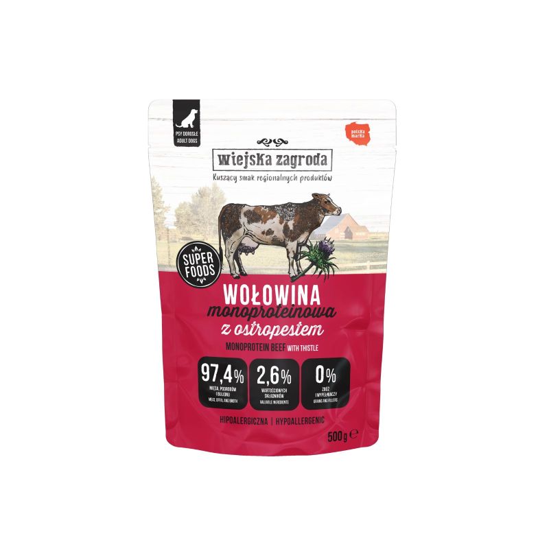 Wiejska Zagroda karma mokra monoproteinowa wołowina z ostropestem