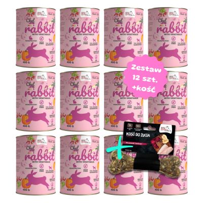Zestaw 12 puszek karmy 400g + kość 13,5cm.