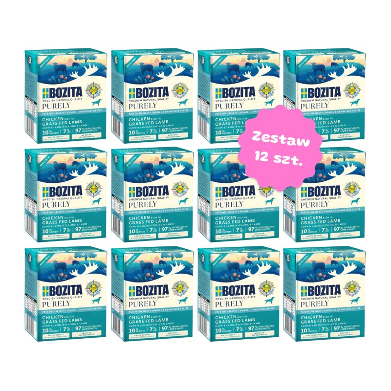 Zestaw 12 kartoników karmy - BOZITA Purely Paté pasztecik z kurczakiem i jagnięciną