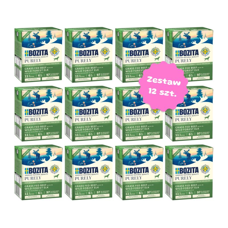 Zestaw 12 kartoników karmy - BOZITA Purely Paté pasztecik z wołowiną i łosiem