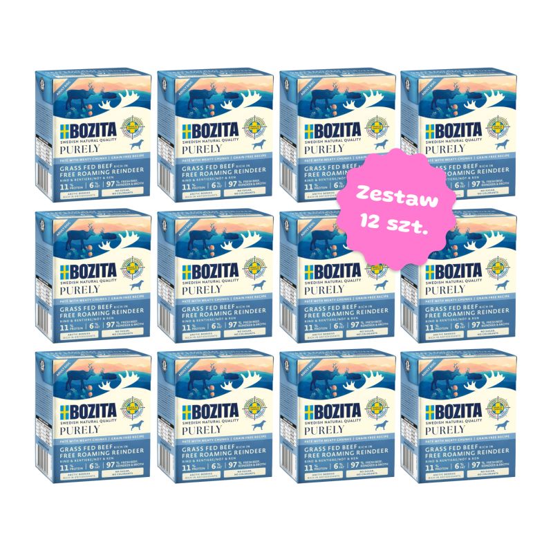 Zestaw 12 kartoników karmy - BOZITA Purely Paté pasztecik z wołowiną i reniferem