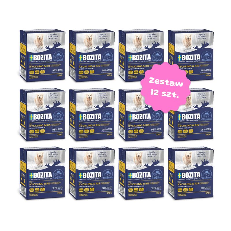 Zestaw 12 kartoników karmy mokrej - Bozita Tetra Recart Kurczak z ryżem w galaretce