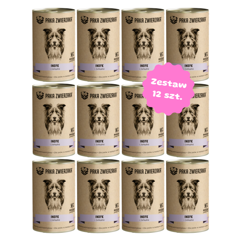 Zestaw 12 puszek 400g - PAKA ZWIERZAKA Indyk z żurawiną karma mokra dla psów w każdym wieku