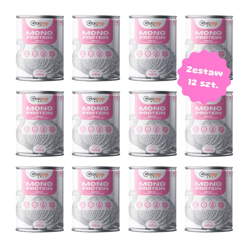 Zestaw 12 puszek karmy monoproteinowej - Gaczoo Mono Protein Puppy Indyk