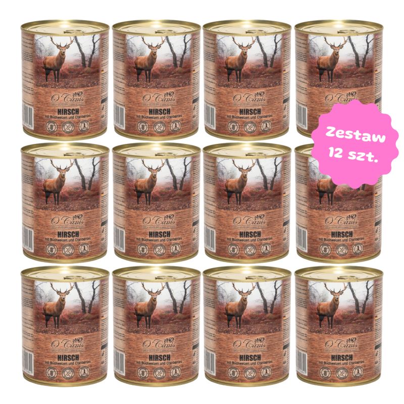 Zestaw 12szt. puszek 800g - O'Canis jeleń z kaszą gryczaną