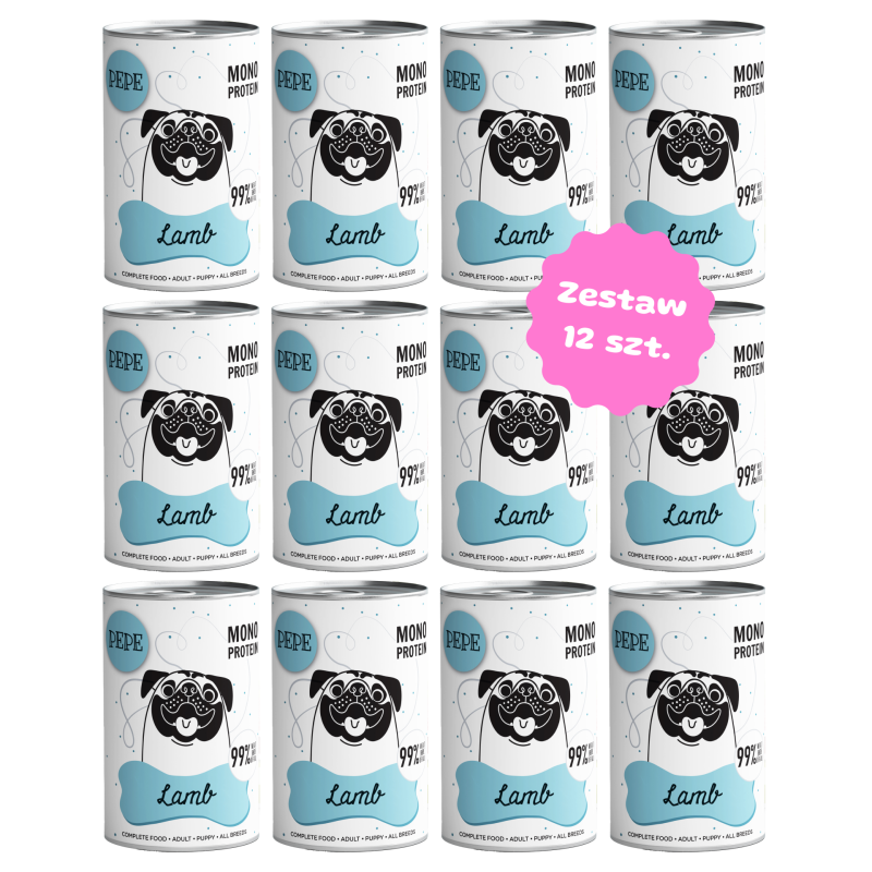Zestaw 12 puszek karmy monoproteinowej - PAKA ZWIERZAKA PEPE MONO PROTEIN jagnięcina