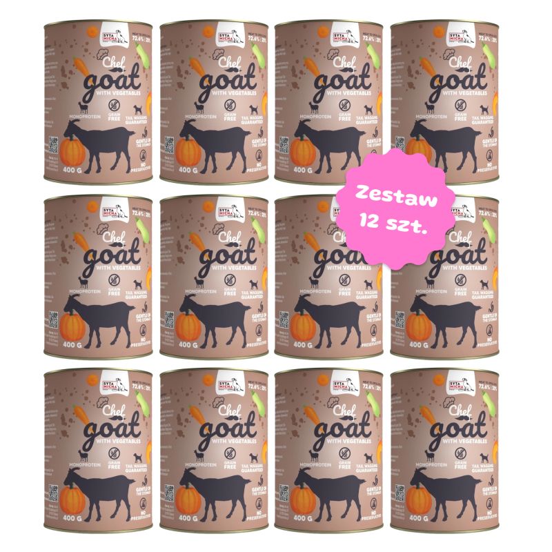 Zestaw 12 puszek karmy monobiałkowej - Syta Micha CHEF Koza z warzywami
