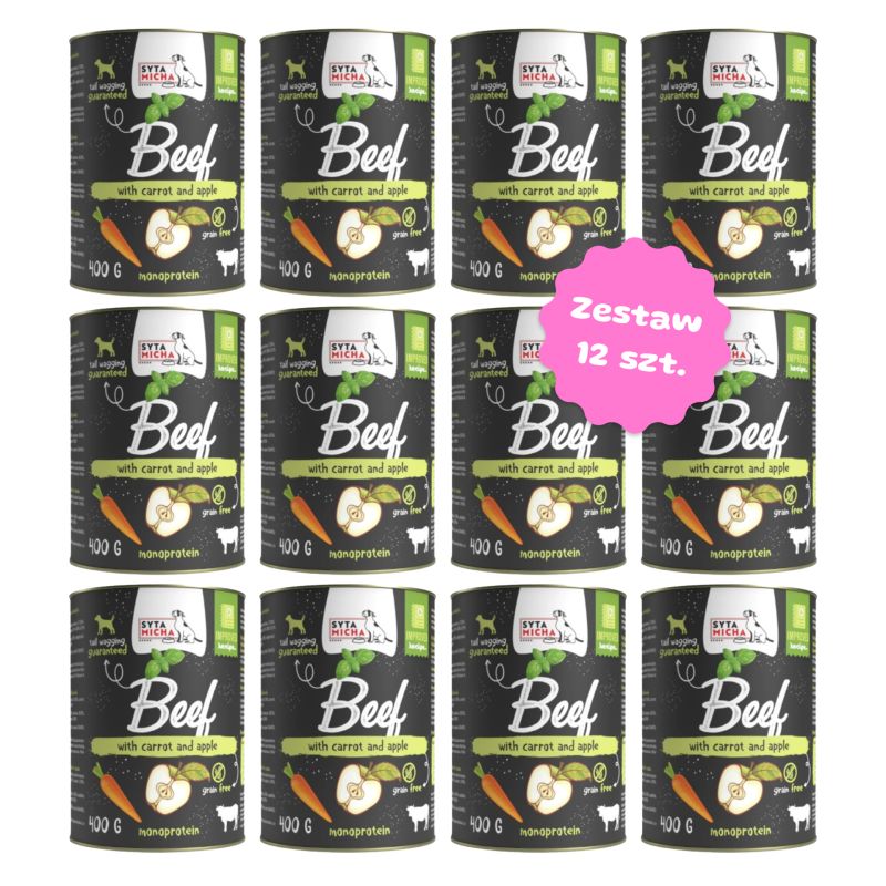 Zestaw 12 puszek karmy monoproteinowej - Syta Micha Wołowina z marchewką i jabłkiem