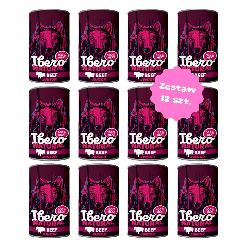 Ibero Natural Konz. Adult Beef mokra karma dla psa z wołowiną - 12 puszek