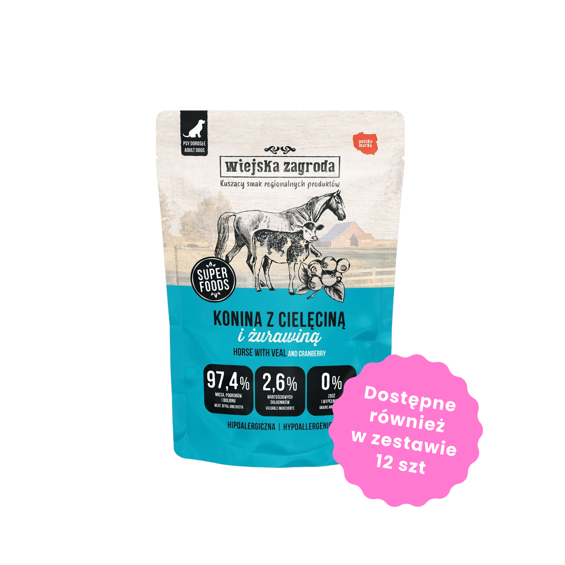 Zestaw 12 saszetek karmy mokrej - Wiejska Zagroda konina z cielęciną