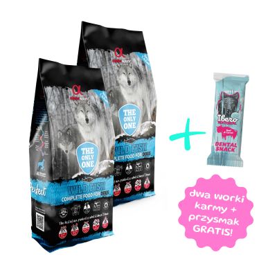 Zestaw 2 worków karmy 12kg - Alpha Spirit The Only One ryba bezzbożowa karma sucha + przysmak Ibero Dental
